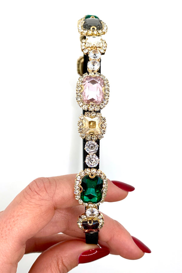 EN DESCRIPTION Delicate Imperial Baroque Headband with smoky Crystal Stones Handmade in Italy with Love Available Colors: SMOKY CRYSTAL - SMOKY GRAY - MULTICOLOR Size: ONE SIZE INFO&DETAILS COMPOSITION Crystal Stones LAVORAZIONE Made in Italy SIZE One size FIT Model wears One size...