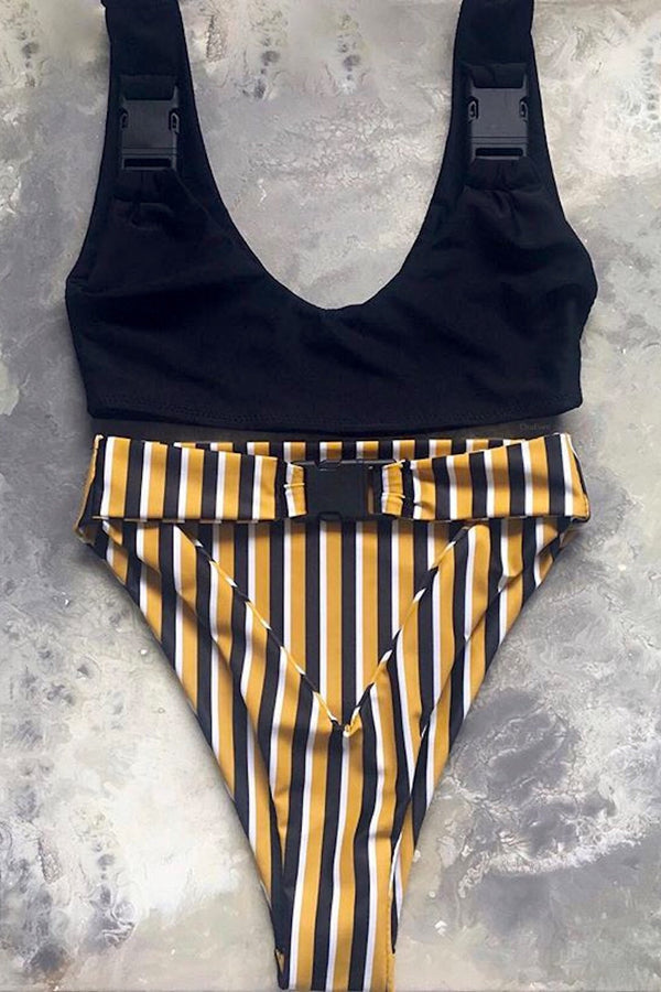 EN DESCRIPTION Last fashionable swimwear trend, Short Top with hooks on the stripes and removable padding, and High Waist Panty with hook belt and cut out details Accessories: Logo Tag, hand stitched on the back of the Panty Available Size: S - M INFO&DETAILS COMPOSITION Lycra LAVORAZIONE MADE IN...
