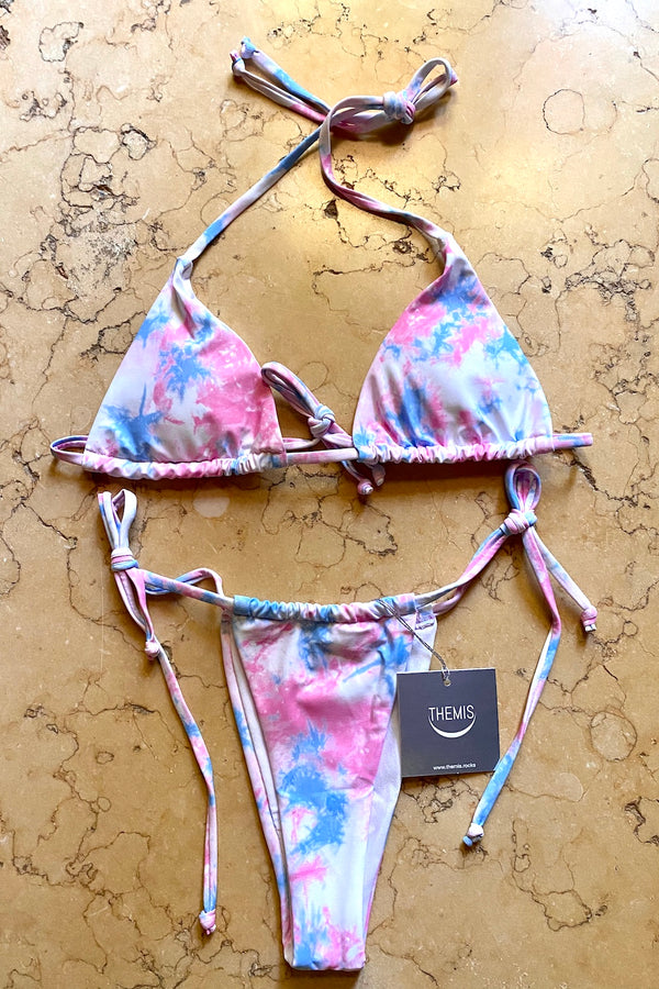 EN DESCRIPTION Double fabric Tie-Dye Bikini, Triangle Top with removable padding and fully tiny adjustable Straps, and fully adjustable Panty with tiny adjustable Straps Accessories: Logo Tag, hand stitched on the back of the Panty Available Size: S - M - L Color: PINK - BLUE - SKY - EMERALD - YELLOW - ORANGE - PURPLE - BROWN INFO&DETAILS...
